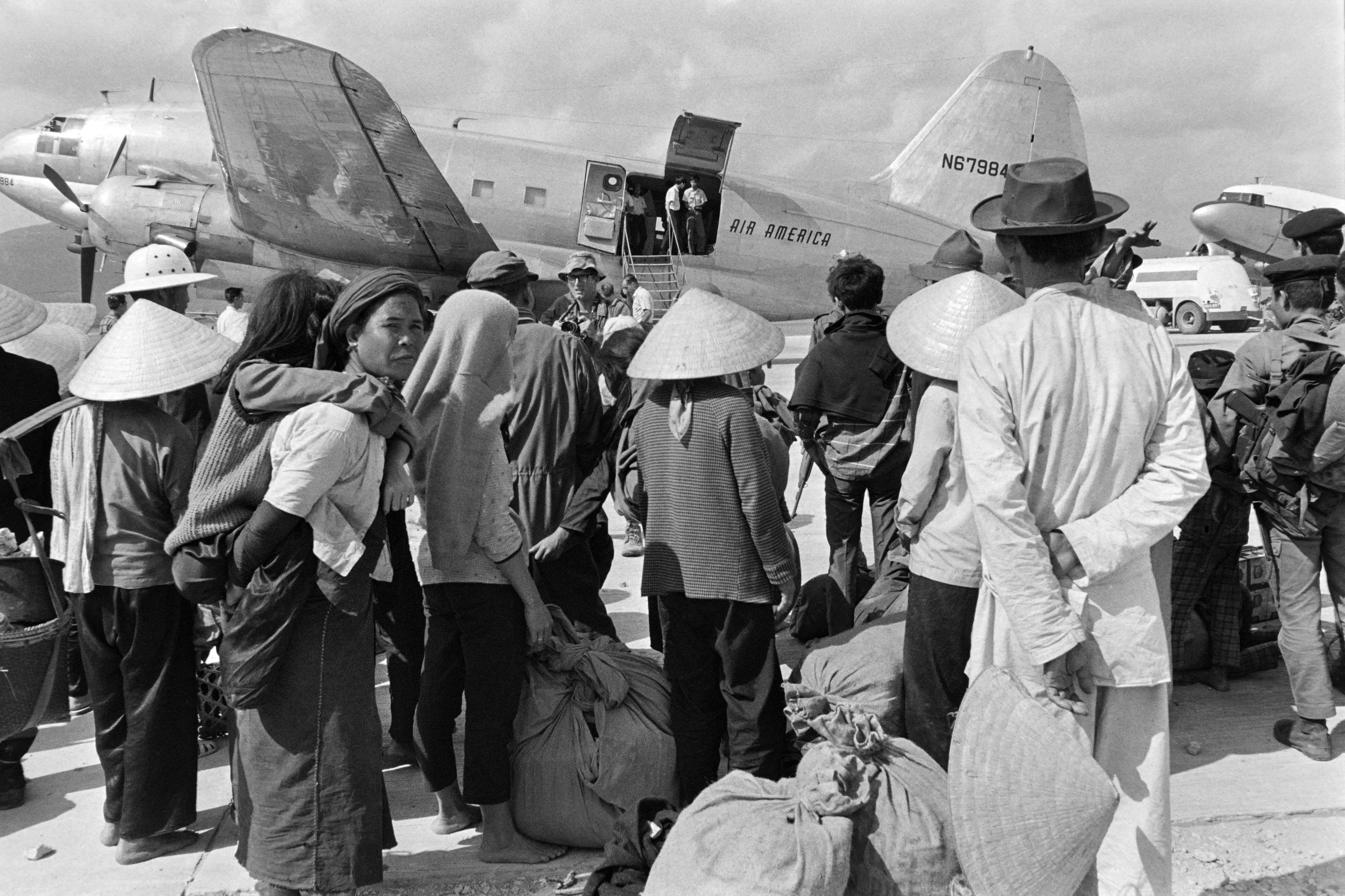 Vietnamese refugees board an Air America plane on January 23, 1968 fleeing the battle of Khe Sanh. [Getty Images]
