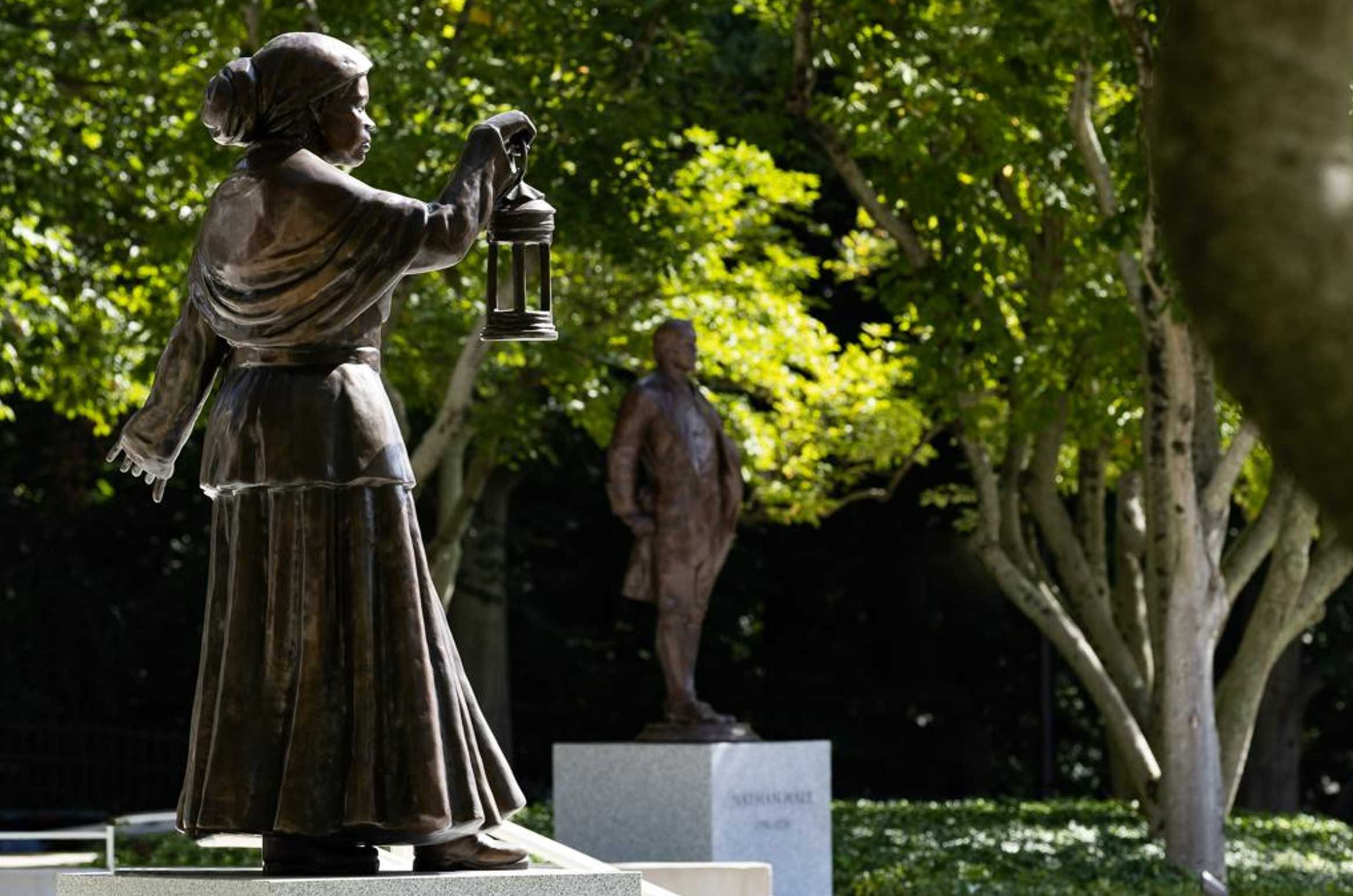 Statues of Harriet Tubman and Nathan Hale at CIA Headquarters.