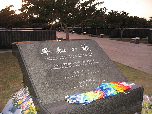 The Cornerstone of Peace is a monument park in Itoman, Japan, that commemorates the Battle of Okinawa and the role of Okinawa during World War II. The names of over 240,000 people who lost their lives in the fighting -- regardless of military/civilian status or nationality -- are inscribed on the memorial. The park was opened on 23 June 1995, marking the 50th anniversary of the end of the 82-day battle.